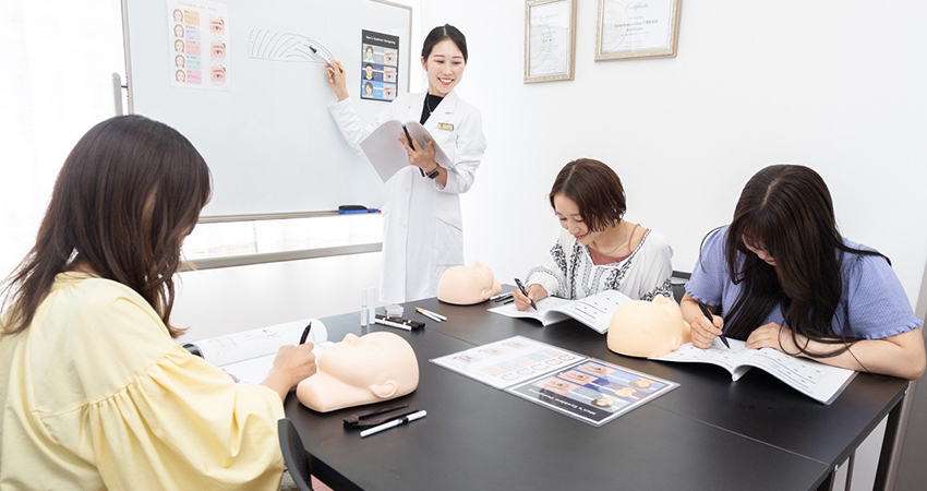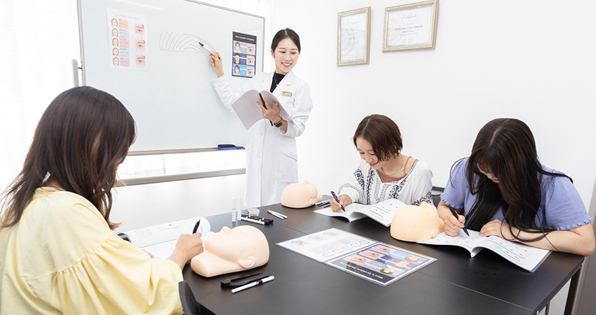 最短2.5ヶ月でデビューできる独自カリキュラムや、ネイルとの二刀流キャリアも用意し、“末長く美容の仕事を続けられる場所”を本気でつくっています。